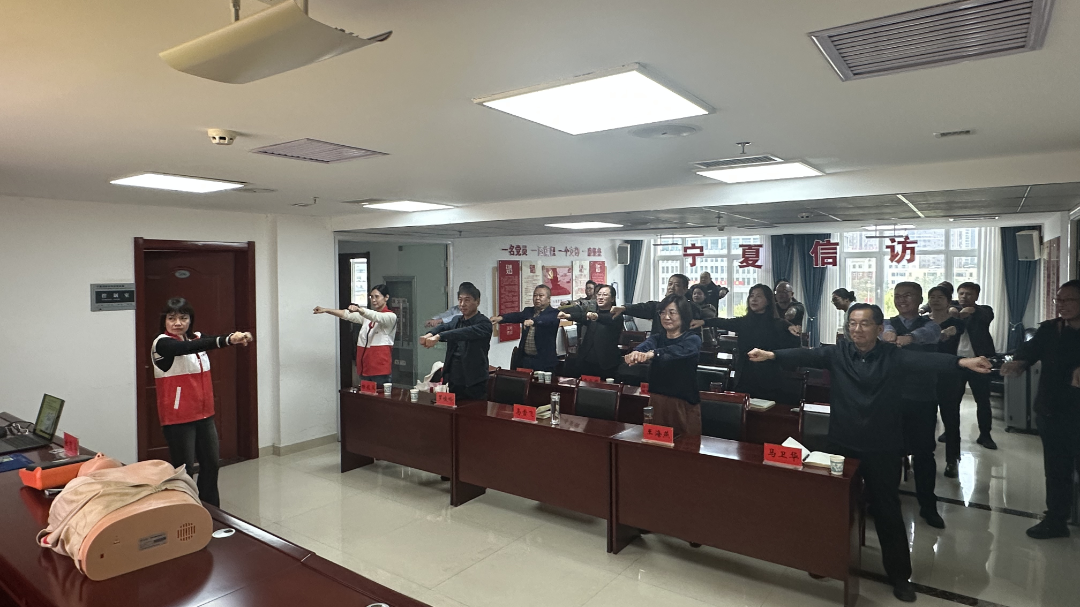 宁夏红十字会骨干志愿者、优秀应急救护师杨兆凤老师围绕《CPR(心肺复苏)+心脑血管疾病急症+颈椎病预防与急救》进行讲座,教会信访干部掌握关键急救技能。国家级健康管理师杜清华老师围绕《手的运动有声音》进行讲座,带领信访干部从“手”开始,关爱全身,疏通经络,缓解疲劳。