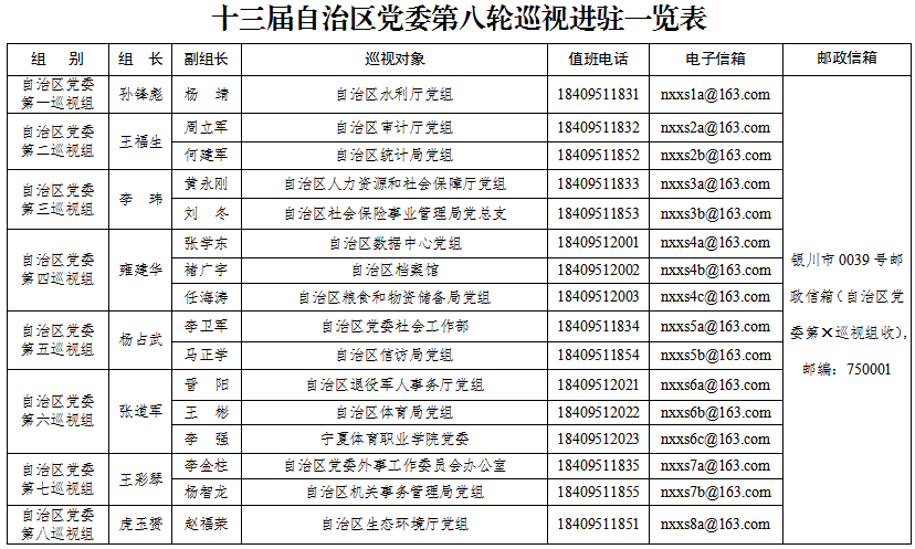 根据自治区党委统一部署,截至3月20日,十三届自治区党委第八轮巡视完成进驻工作。自治区党委8个巡视组将对16个部门(单位)党组织开展巡视。